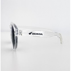 Embrace a modern and sleek style with these Honda sunglasses. Featuring transparent frames, they offer a unique and contemporary look, perfect for any occasion. The black round lenses provide optimal UV protection, while adding a touch of mystery to your appearance. The Honda logo on the arms highlights your passion for this legendary brand, combining design and performance. Whether you're on a motorcycle ride or enjoying a day in the city, these sunglasses are the must-have accessory to showcase your style.